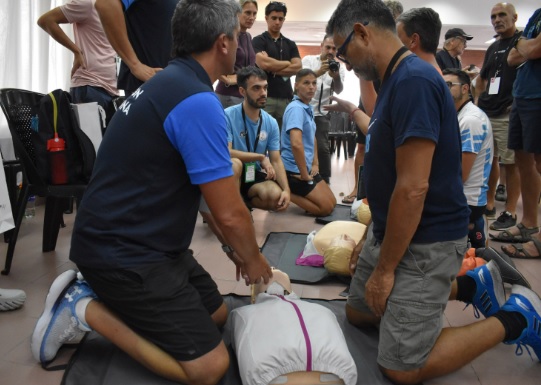 Durante la jornada, los entrenadores de las 36 disciplinas individuales que representarán al país participaron de charlas y talleres sobre RCP, manejo de DEA y primeros auxilios.